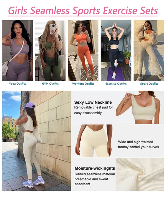 Women Workout Sets Yoga Outfits Seamless Sports Bra and High Waist Leggings Gym Clothes Tracksuit