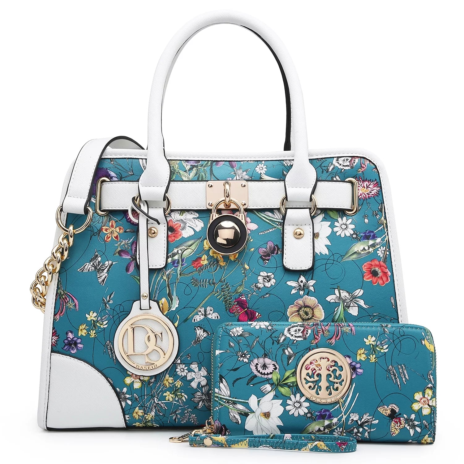 Women Structured Handbags Top Handle Satchel Purse Shoulder Bag Briefcase Hobo Bag Set 2Pcs